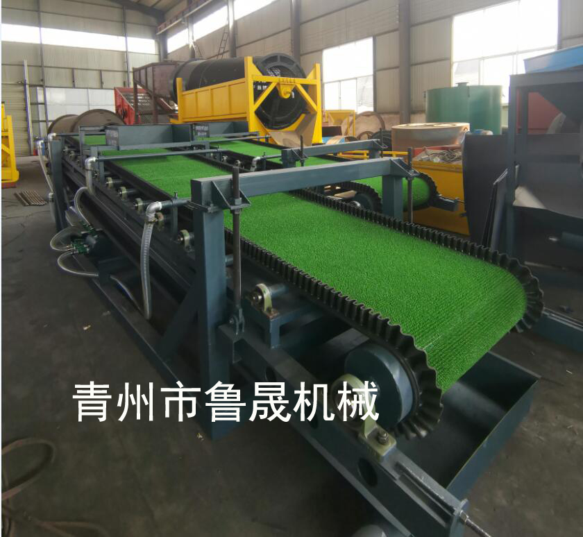 完成個循 環(huán)后將收集后的黃金自動卸下來,然后成為了全新沒有沙料的床面了,新的床面旋磚上來后再繼續(xù)回收工作,重復此工作,這樣一直都是新的床面沒有沙子的床面,沒有於住的床面進行黃金的回收,黃金回收率大大增加,并且我們通過床面的改造,使其能回收不同性質(zhì)不同顆粒狀的黃金。