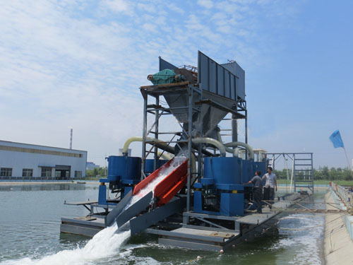 水套離心機(jī)淘金船的工作流程:船上的設(shè)備由八個(gè)系統(tǒng)組成。