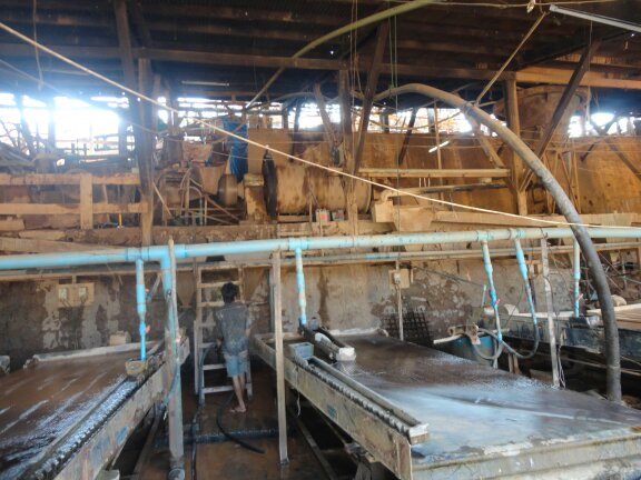 巖金礦經(jīng)過破碎后就需要重選設(shè)備將黃金回收住,新型的巖金礦重選設(shè)備有:魯晟水套離心機、選礦機、跳汰機、搖床和溜槽等幾大類。溜槽類包括:蠕動溜槽、鼓動溜槽、皮帶溜槽、毛毯溜槽、振動溜槽等多種。每種溜槽所回收的金顆粒度和金的形態(tài)都是不同的。 另外往復(fù)式選礦機、跳汰機、搖床等幾種重選設(shè)備可以根據(jù)金的形態(tài)和顆粒度與溜槽等其他重選設(shè)備搭配進(jìn)行金的回收。這樣才能是回收率達(dá)到高。因為每種重選機所針對的顆粒度和金的形態(tài)不同。可以采用聯(lián)合重選,使其達(dá)到好的效益。