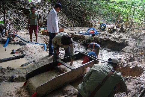 以下是劉總發(fā)來(lái)當(dāng)時(shí)人在開(kāi)采沙金礦,和比較原始回收率低的簡(jiǎn)易工具: