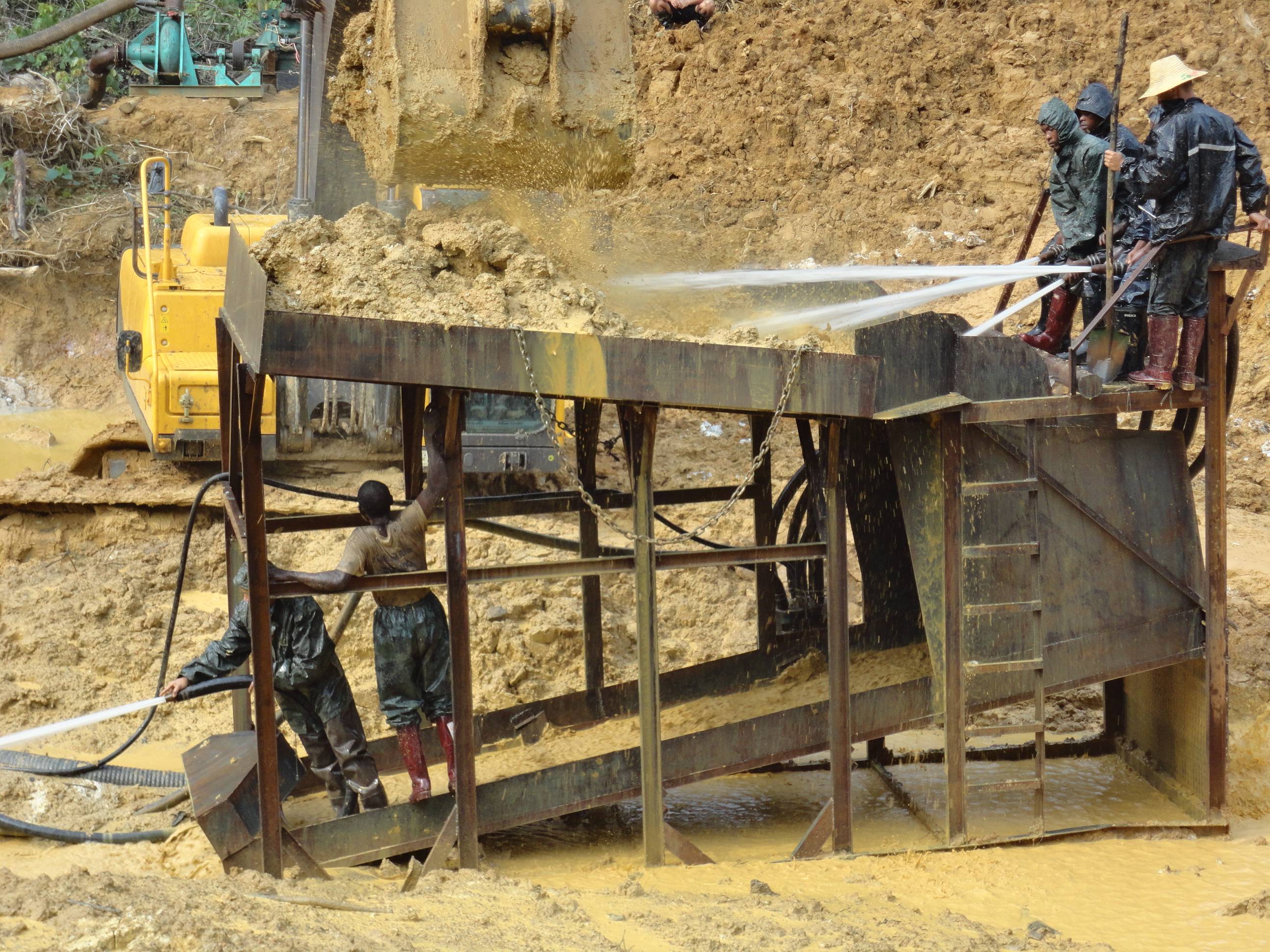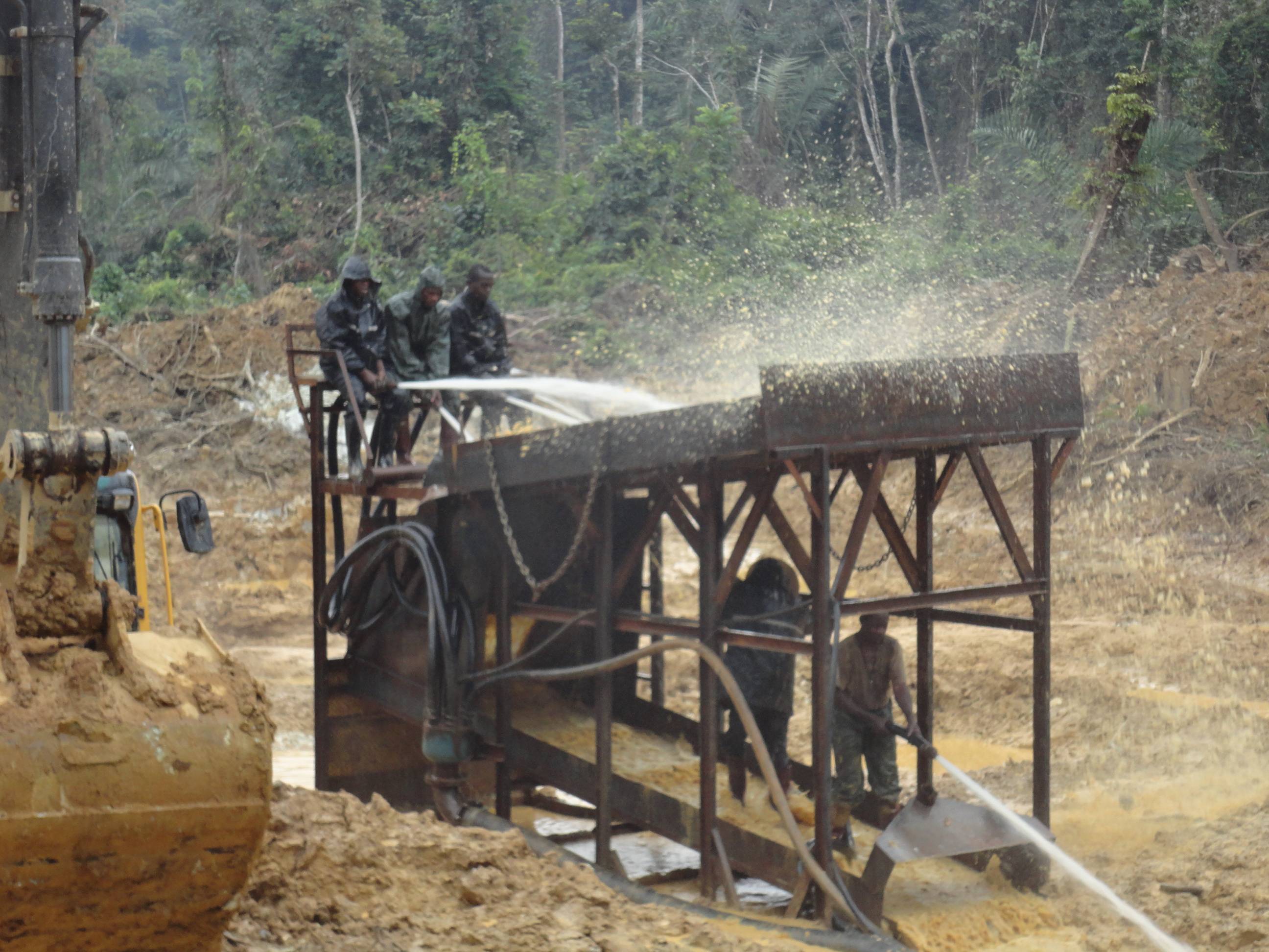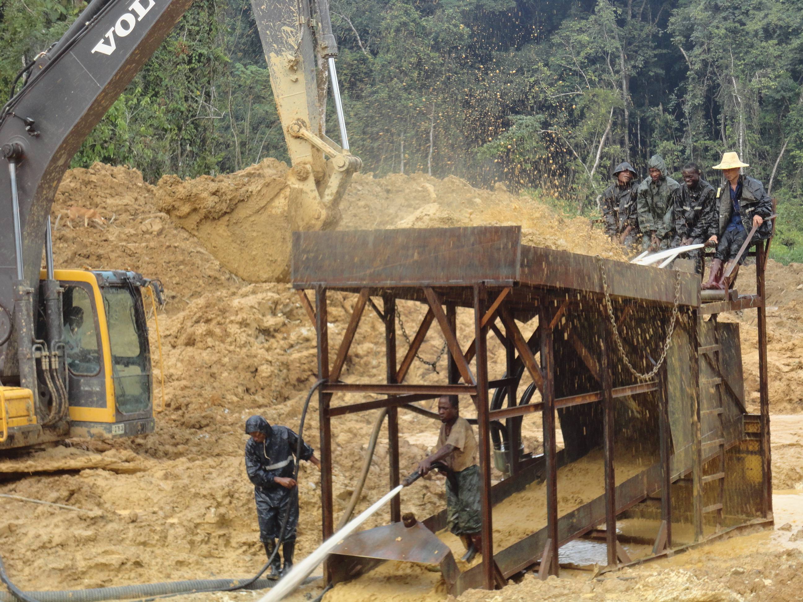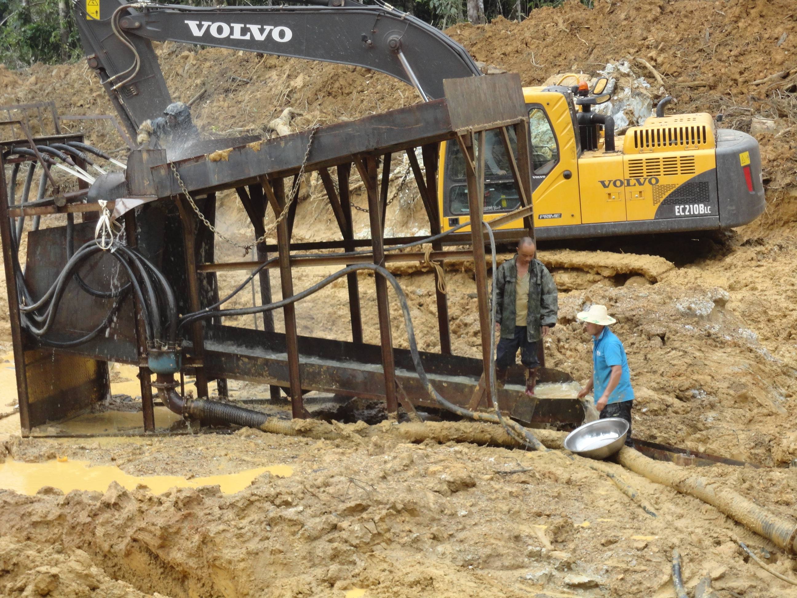 杭州的陳總在幾內(nèi)亞進(jìn)行沙金礦的開(kāi)采,使用的是原始的大溜槽,這種大溜槽產(chǎn)量小,洗礦效果不好,需要人工手持水槍沖洗,沒(méi)有絞泥的效果,另外黃金回收也是固定溜槽,回收率低,尾礦當(dāng)中還有3克含量。所以陳總直接來(lái)到魯晟機(jī)械考察移動(dòng)式新型的旱地沙金設(shè)備。這種新型的是一體式的,移動(dòng)非常方便,配套新型防盜的選金系統(tǒng),回收率高。不光能回收顆粒金,還可以回收毛細(xì)金,片金,等微粒金,目前這款設(shè)備很受客戶(hù)的歡迎。